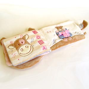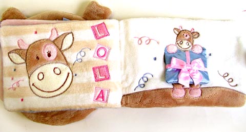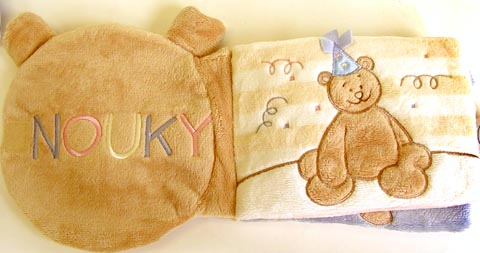 やわらかな色使いにベロアのさわり心地がお祝いにぴったりな、NOUKIE'S(ヌーキーズ)の布絵本です。 楽しい仕掛けでヌーキーとお友達が祝福してくれますよ。